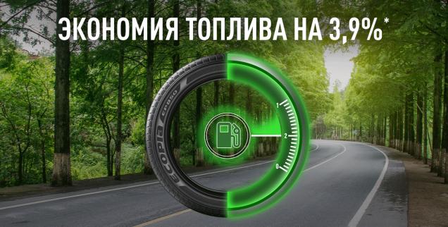 Экономное вождение не только сохраняет топливо, но и бережно относится к окружающей среде, уменьшая выброс C02.  Расход топлива меньше на 3,9%2 благодаря низкому уровню сопротивления качению и облегченной конструкции шины.